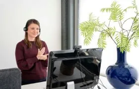 Die vertaalt dan de gebaren naar gesproken Nederlands voor de medewerker