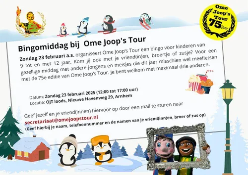 Zondag 23 februari zijn alle kinderen uit Arnhem in de leeftijd van negen tot en met twaalf jaar welkom op een speciale bingomiddag op de loods van Ome Joop’s