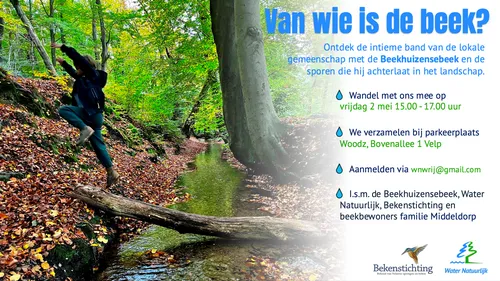 - Op vrijdagmiddag 2 mei van 15.00- 17.00 uur wandel je langs de Beekhuizensebeek.